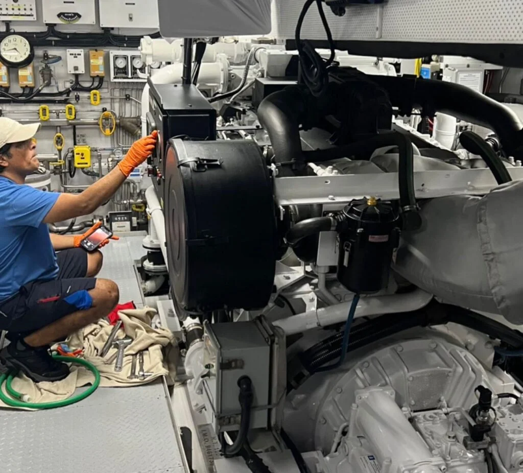 - Main engines: Oil, fuel system, impellers, zincs, turbo’s, coolers, belts, alternator and batteries.